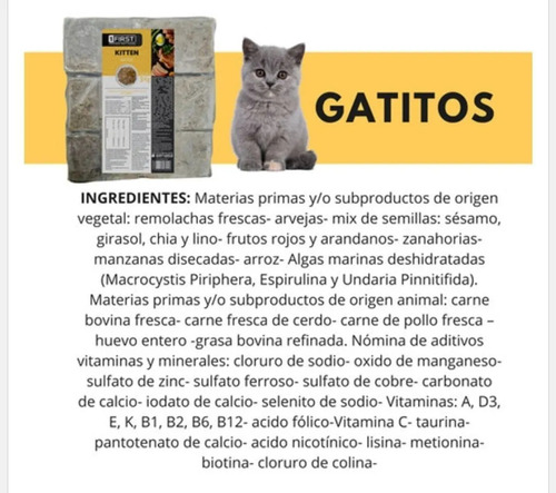 Ideal para aquellas personas que buscan lo mejor para sus felinos, este alimento es fácil de almacenar y servir. Al incorporar Alimento First en la dieta de tu gatito, te asegurarás de que esté bien alimentado y listo para crecer feliz y saludable. Dale a tu amigo peludo la nutrición que merece con First, porque cada bocado cuenta en su crecimiento y bienestar.