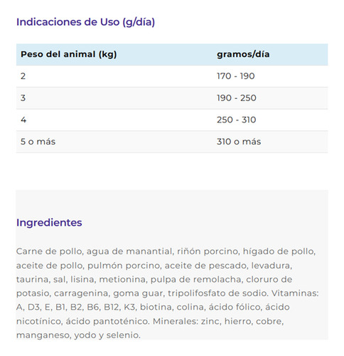 Cada pouch de 85 g está elaborado con ingredientes de alta calidad, como agua de manantial, riñón porcino, hígado de pollo y aceite de pescado, que garantizan un sabor irresistible. Además, la inclusión de taurina y vitaminas A y D3 contribuye al bienestar general de tu gato, apoyando su salud y vitalidad.