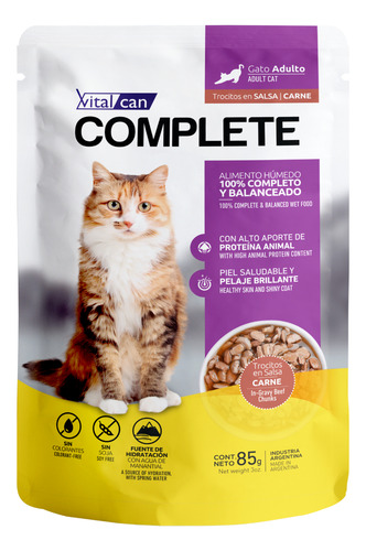 Vitalcan Pouch Complete Gato Adulto Sabor Carne 85g X 12 Und